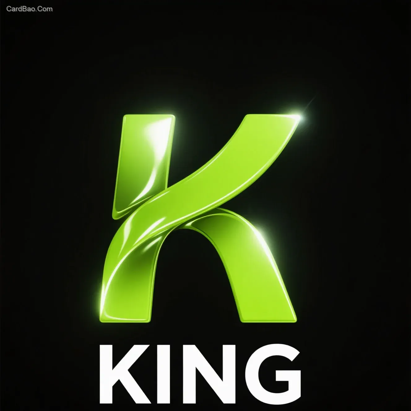 Logo design with a black background. The bright green letter "K" is designed with smooth curves and a glossy surface, as if radiating an aura of intelligence. Subtle light effects at the cut edges of the letter enhance its three-dimensional appearance. The word "KING" is set in a clean, white sans-serif font with moderate letter spacing and neat alignment. The overall design features a modern, sleek texture, creating a professional and innovative atmosphere. It conveys the brand's commitment to providing intelligent and practical solutions, embodying the essence of a masterful creation.