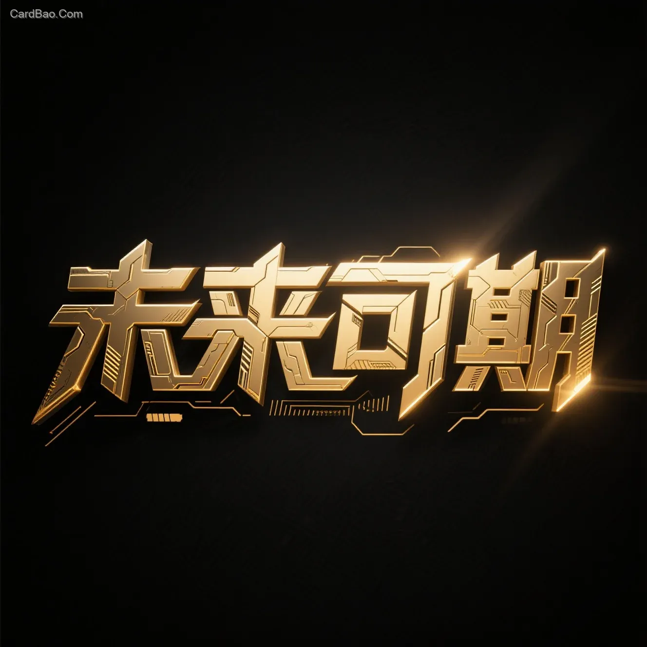 字体设计"未来可期",标题设计,机甲科技感风格设计,笔画机械棱角变形设计,融入电路纹理,营造出充满未来科技感,大气,传奇大师字体作品,黑色纯背景。