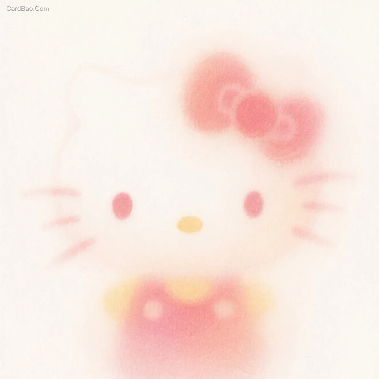 水彩,Hello Kitty,柔和晕染,超现实主义,风格独特,极简,美学,朦胧艺术。颜色兼具柔和与明亮。柔光。高分辨率。