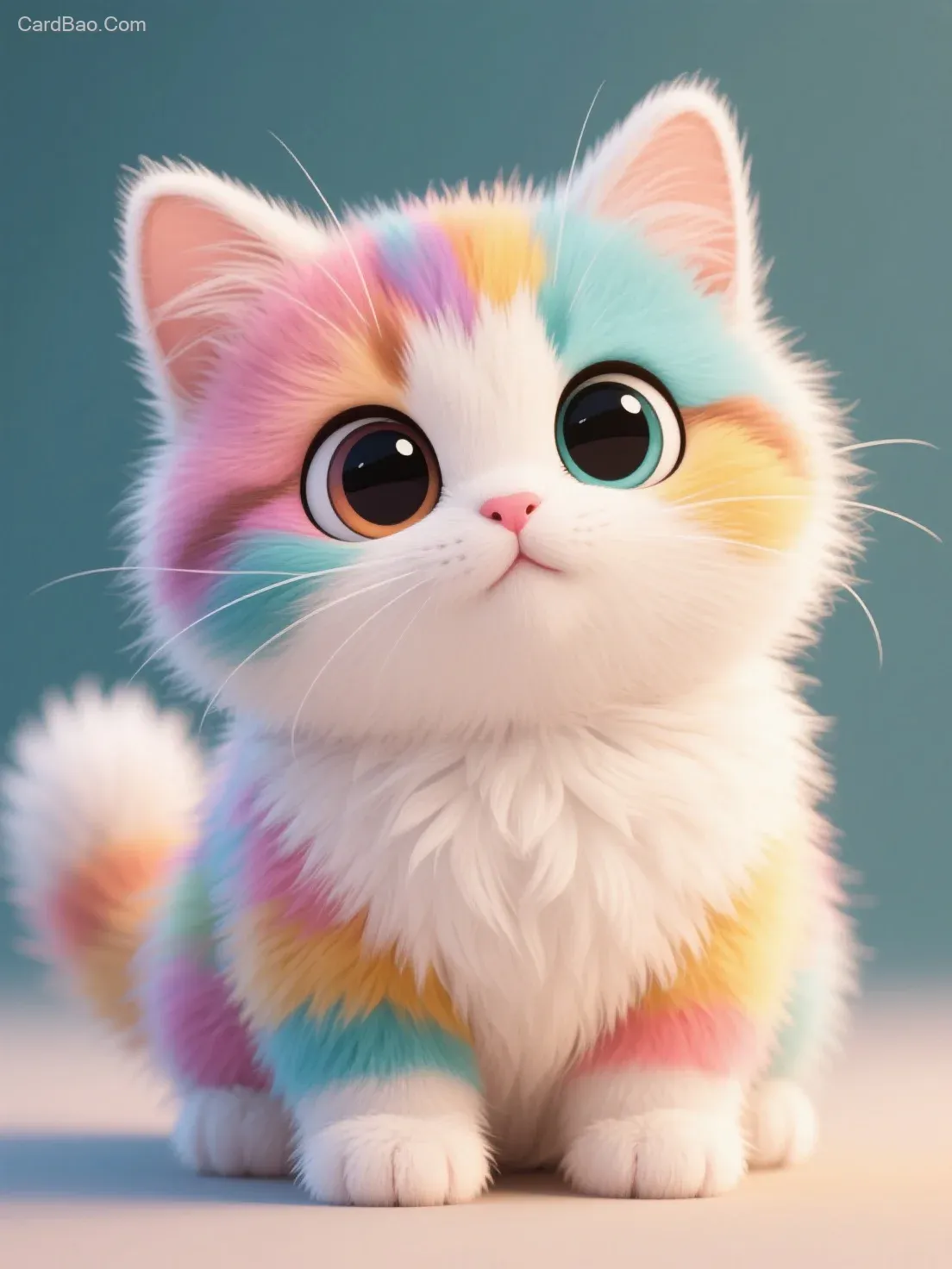 Cartoon wallpaper, fluffy little kitten, especially cute expression, big eyes. Extremely adorable, high-definition. Four-color pattern.