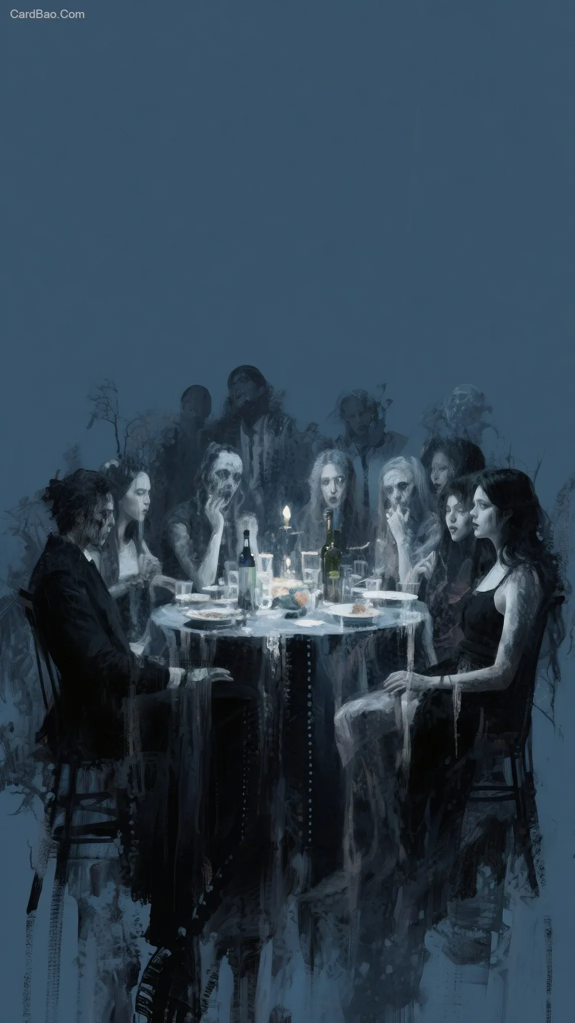 纯色背景,暗黑系,枯蓝银灰配色,非常规独特构图,大师光影,电影胶片质感,印象派,抽象,朦胧,过曝,双重曝光,抽帧,复古电影风格,矛盾冲突的视觉冲击和有机融合,恐怖聚会,艺术氛围浓厚,情绪叙事,抽象艺术,获奖作品。