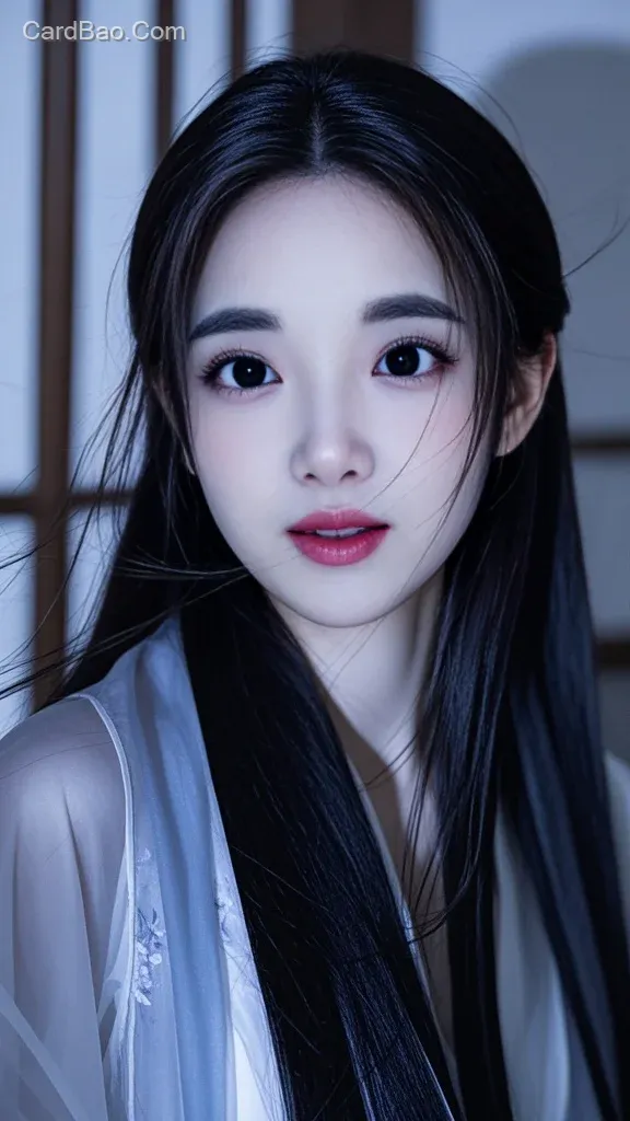 Long hair, cool skin, matte texture, Chinese style, surreal portrait, cool color palette, high-definition quality, 8K resolution, ethereal and dreamy.