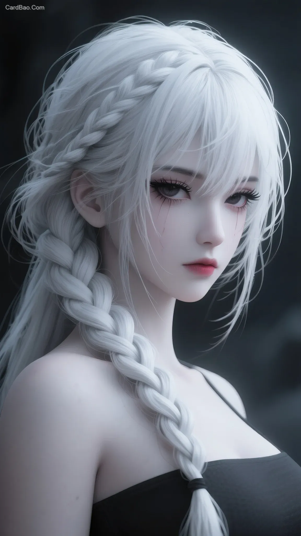 女子深邃沉静,神秘诡异,藐视,清冷,长睫毛,清冷装扮,蓬松凌乱至极的发辫从头顶与鬓发编织在一起半散开自然垂下,辫子从头顶往下越来越细越来越乱,空气刘海玉米须卷发烫刘海,散开到一半的编发自然搭在肩膀上,低马尾搭在肩膀上看起来恬静淑女。雾感薄刘海蓬松凌乱至极,有炸毛碎发看起来颓废。清澈无辜的眼神,雾白色渐变长头发,柳叶眉,鹅蛋脸含糖脸,颓废丧气厌世至极的潇洒御姐,线条清晰,明暗对比,干净的脸蛋,长睫毛,深黑色瞳孔,清透,绝美眼睛,邪魅眼神,眼尾泛红,鼻尖泛红,眼眶泛红,白色眼线,含糖脸。细节五官。丰富细节,含情眼,魅惑,清冷,清透肌肤,瓷肌,丰富的细节,垂眸,凌乱发丝,3D立体国产动漫人物建模,超高清细致纹理贴图超精致雾感凌乱蓬松朦胧刘海笔触,线条清晰,凌乱碎发超薄空气刘海,长睫毛,看起来很颓废,放松,慵懒,明暗对比,超高清,青年,乖巧宅系亚麻浅灰渐变冷白色及腰长发碎感发型,厚发量,日系美魅贵族女爵冷酷帅气,阴柔不失英气,忠诚贵气受,幽灵宅女,清冷感冷漠孤僻,高级感,杏仁眼,凌乱美精气纯欲感御姐,慈爱精致孤僻谦卑的容貌,极致诱惑,绝美眼睛,极致墨黑色星星眼,脸色苍白干净,体质很差,清透感,傲娇,淡麻灰到银白色渐变发型法师刘海碎发空气刘海,头顶有散乱编发自然垂下,头发自然下垂,在发尾的地方编出散乱到一半的辫子搭在肩膀上,层次感发型,高级凌乱美,精美发丝蓬松,极致妖孽的容貌,极致亲切感,长睫毛,精美配饰,绝美眼睛,柔美忠厚,细节五官。身姿挺拔。神秘感,丰富的细节,凌乱发丝拂面略显成熟,高质量,写实逼真,艳丽的油画质感,细腻纹理,bjd,仰拍视角,看向镜头