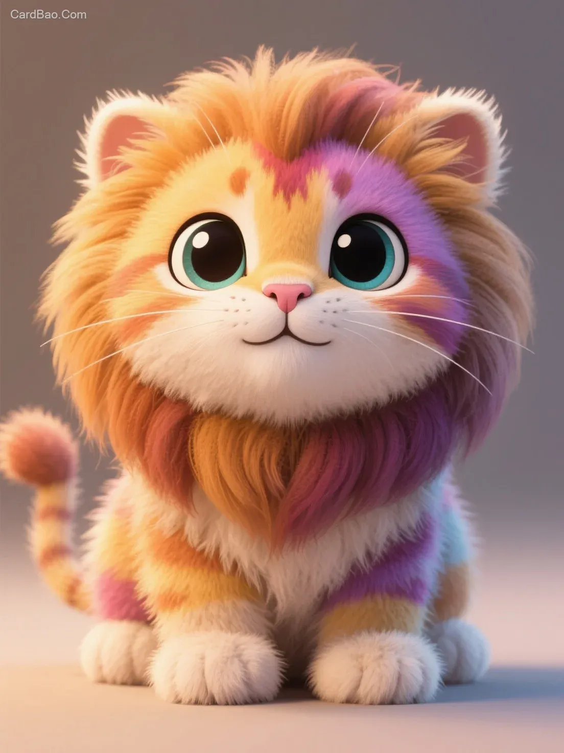 Cartoon wallpaper, fluffy little kitten, particularly adorable expression, big eyes. Extremely cute, high-definition. Calico pattern, eventually transforms into a lion.