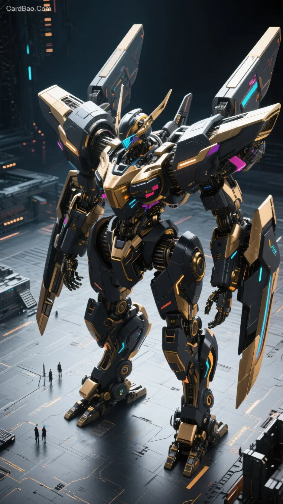 超级时空文明,在巨大宽广的机械广场上,有一台体型巨大的太空机甲天王圣姬孙尚香,外型威武,风格独特,可变形元素。超级科幻风格,极精细风格,形体优美对称,极抽象艺术风格,环绕流线型,形态结构精美,层次分明,细节完美。色调暗黑,色彩鲜亮,材质磨砂钛金,光影分明,明暗对比强烈,3d写实,超高清渲染,长镜头,大景深,广角镜头,鸟瞰镜头,全身特写,全面展示。