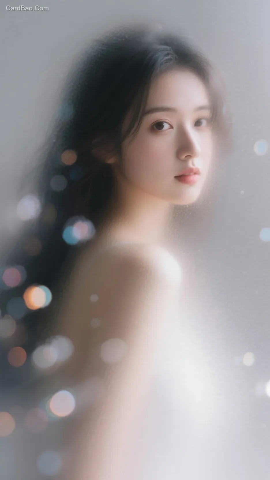 毛玻璃朦胧模糊感,颗粒层次,漂亮女孩的模糊影像,色彩晕染,发光,动态模糊,朦胧美学,灵动,梦核,极简风,高级灰,高级感,细节完美,高清,杰作