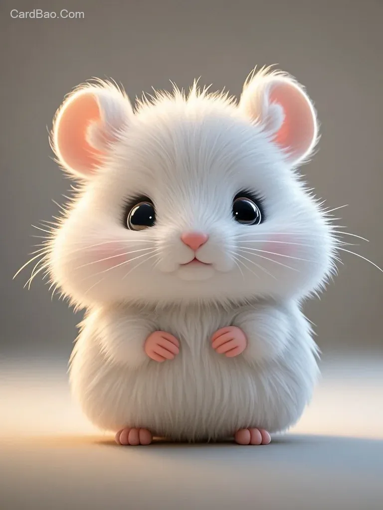 Q版画风,萌系,简约风,3d渲染,高级感,梦幻感,白色的小仓鼠萌宠,可爱画风,超高清,超细节,层次分明,表情生动,毛绒绒的玩具