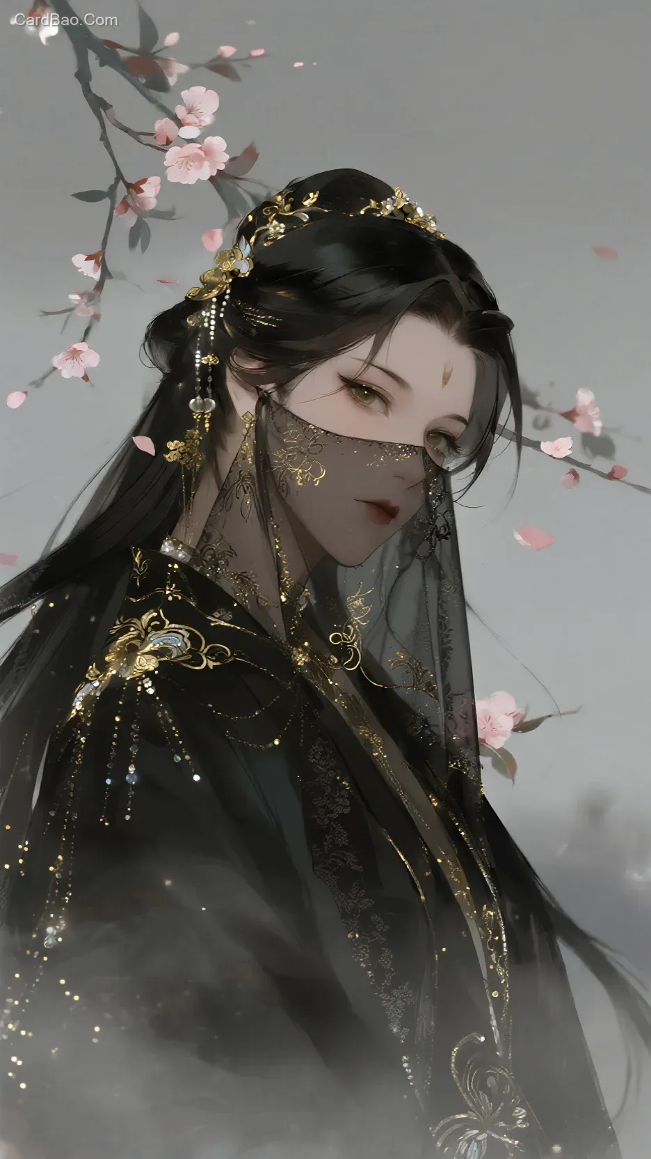 邪魅女主 三维古风漫画风格 金线绣花面纱覆面