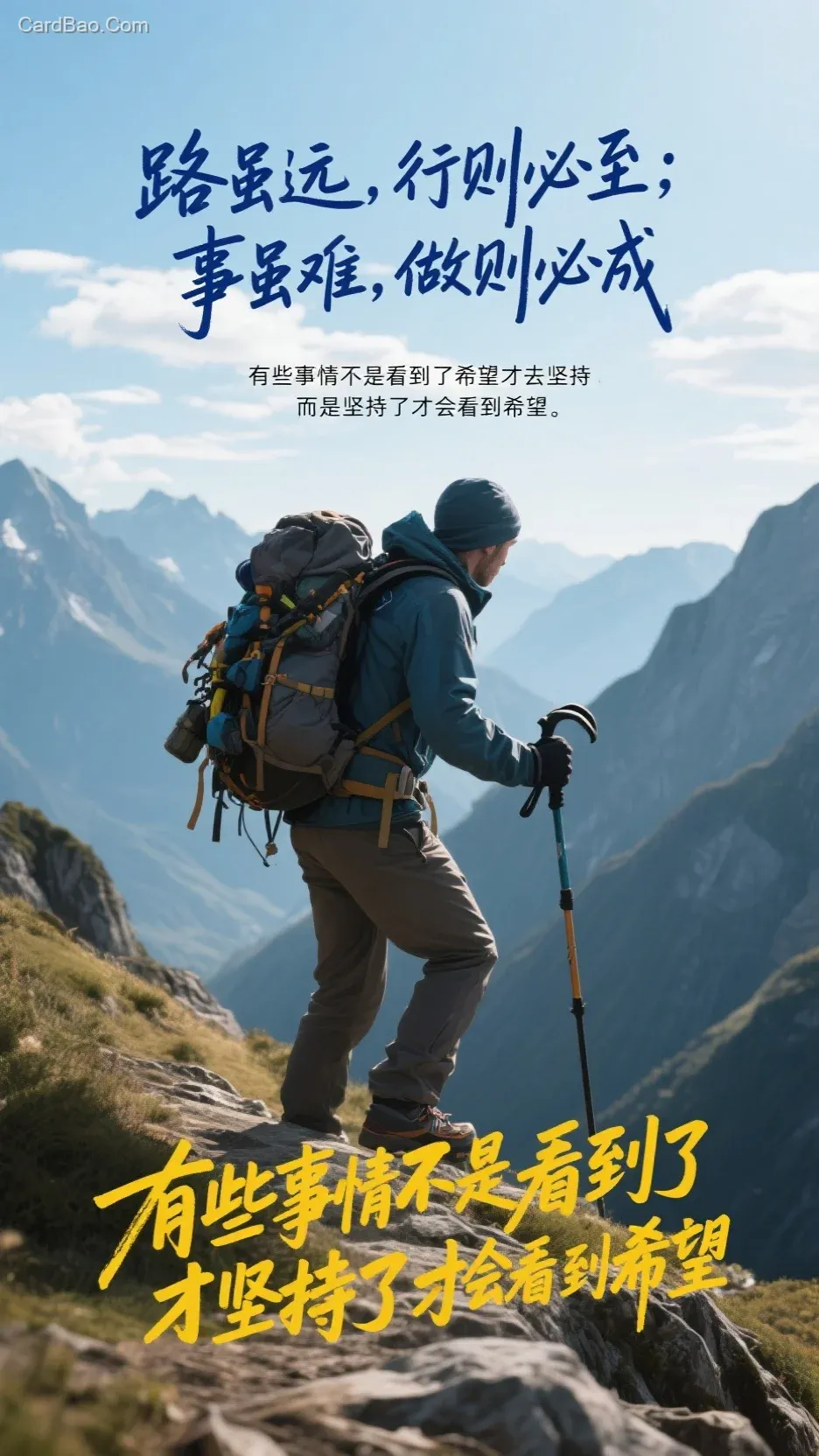 路虽远,行则必至;事虽难,做则必成。有些事情不是看到了希望才去坚持,而是坚持了才会看到希望。