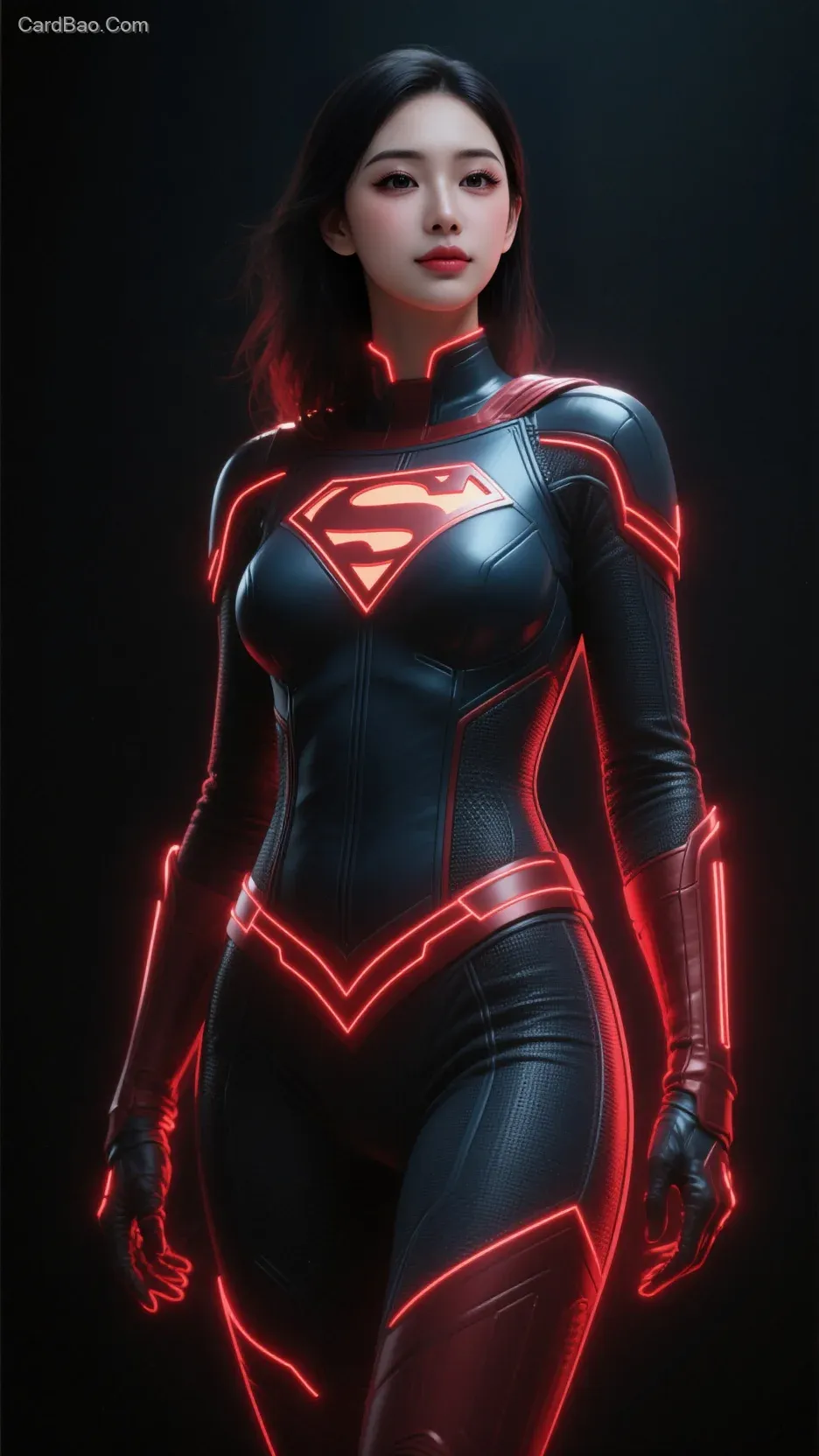 ##高清壁纸,supergirl,氪星战衣,纯黑色背景,big boobs人物轮廓红色发光线条,阴影,勾勒出人物外形