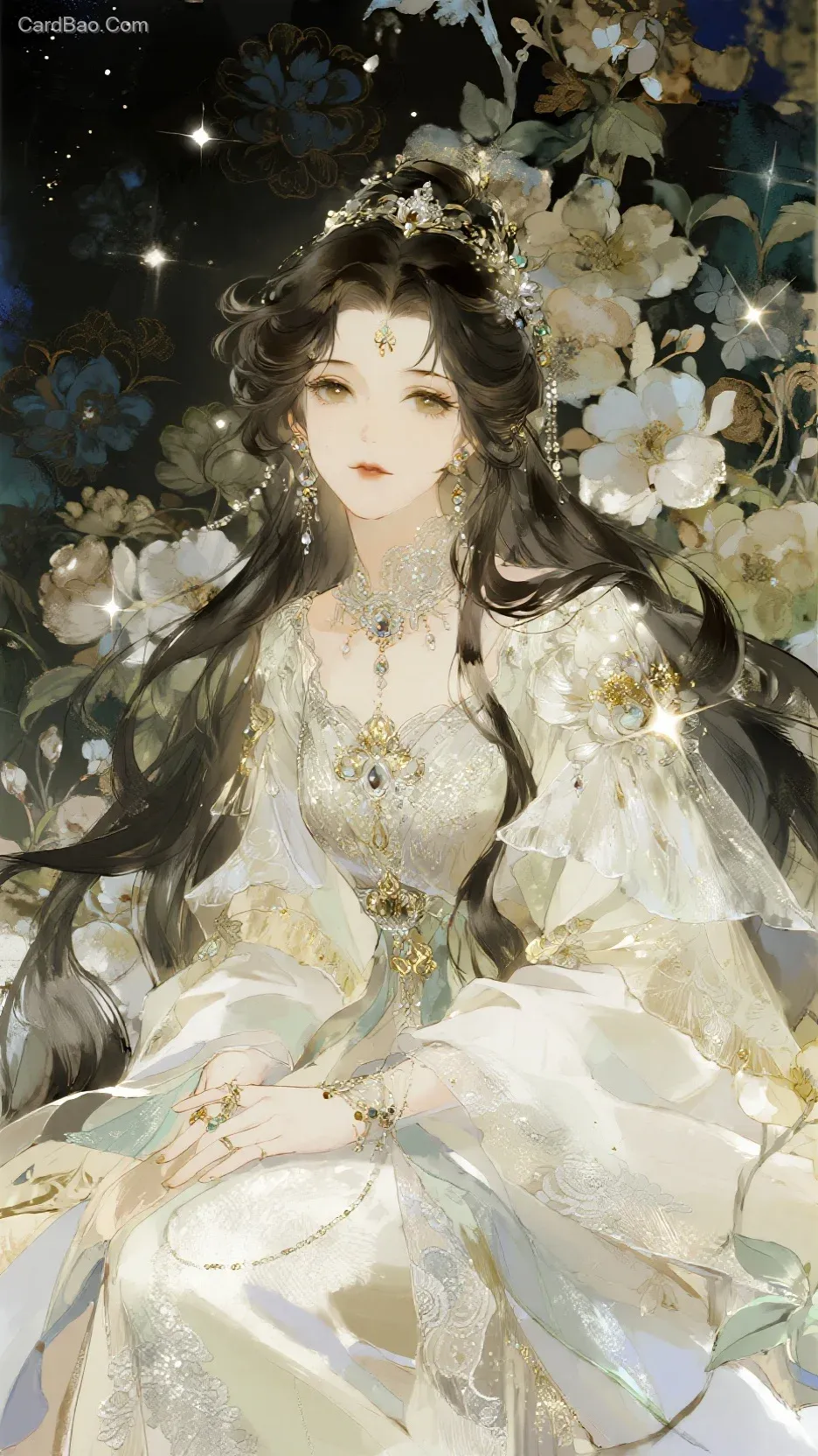 Background in dark tones with intricate floral patterns, starry night color palette