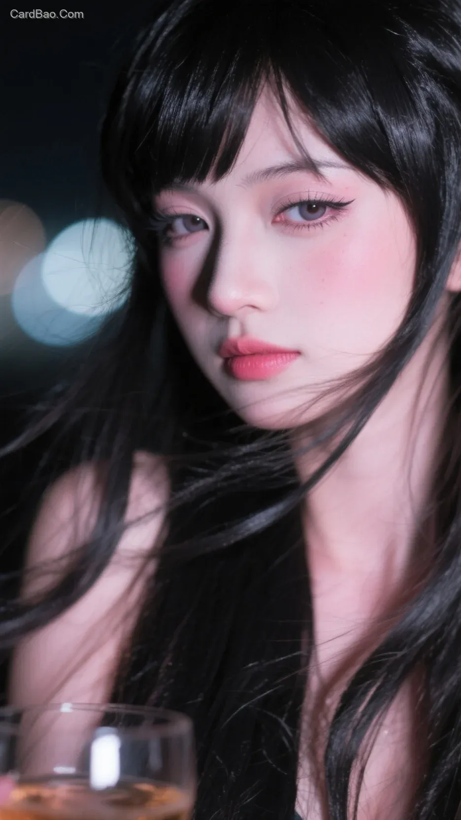 One Piece Nami Cosplay, real-life imitation, one-to-one restoration, body obscured by darkness, face illuminated by a soft gradient of pink-gray light, magical, dreamy, Cosplay, classic look, role-playing, macro lens, eye close-up, shy expression, blushing cheeks, ultra-high definition, super fine image details, realistic skin texture, ultimate detail, fair and tender skin, smooth and delicate skin, flowing black hair, detailed strands of hair, serene and elegant, delicate skin, atmospheric feel, 32K, hyper-realistic skin texture, super detailed, high level of detail, attention to detail, contrast between light and shadow, ultimate detail, master-level lighting, sense of depth, three-dimensionality, extreme lighting, fine hair, detailed strands of hair, theme description: flowing long hair in a tipsy state, Wong Kar-wai film grain texture aesthetic terms: Gaussian blur effect with soft focus processing, dramatic interplay of light and shadow, compositional tension through blending of reality and illusion, professional terms: 35mm film simulation, large aperture shallow depth of field, exposure compensation to control shadow details, dual-color temperature flash lighting, background bokeh blur processing, Dolby Vision dynamic range, colorful bokeh, elegant posture, fair and clean skin illuminated to reveal smooth and delicate texture.