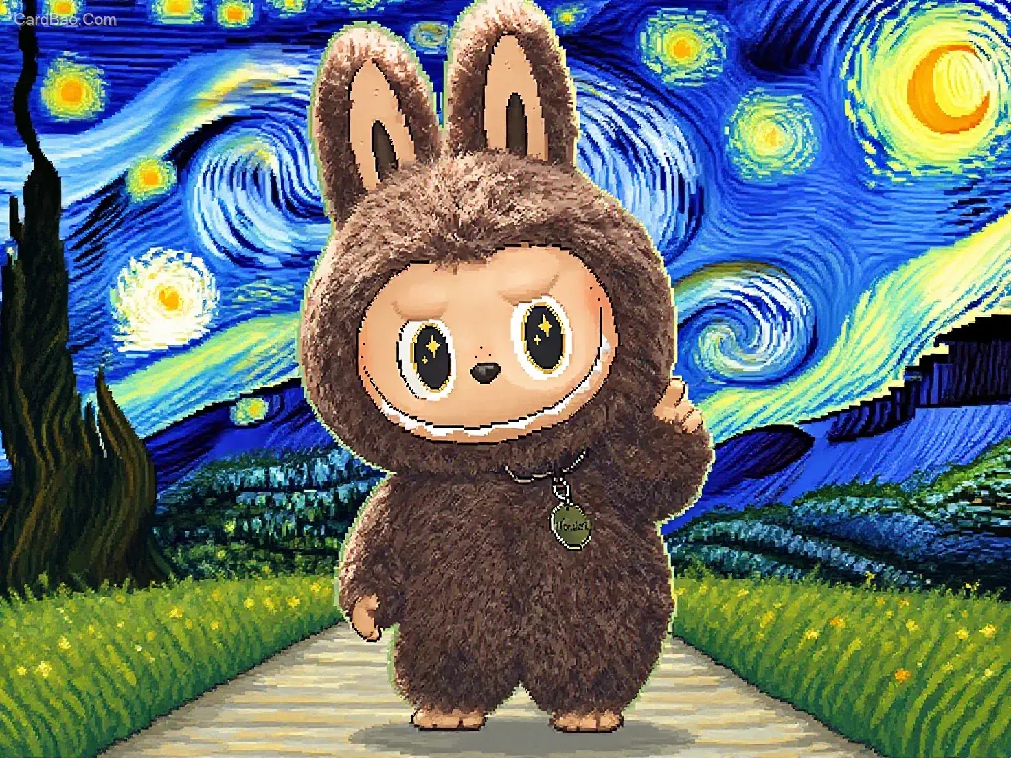 ## This little animal walks under Van Gogh's starry sky, in pixel art style