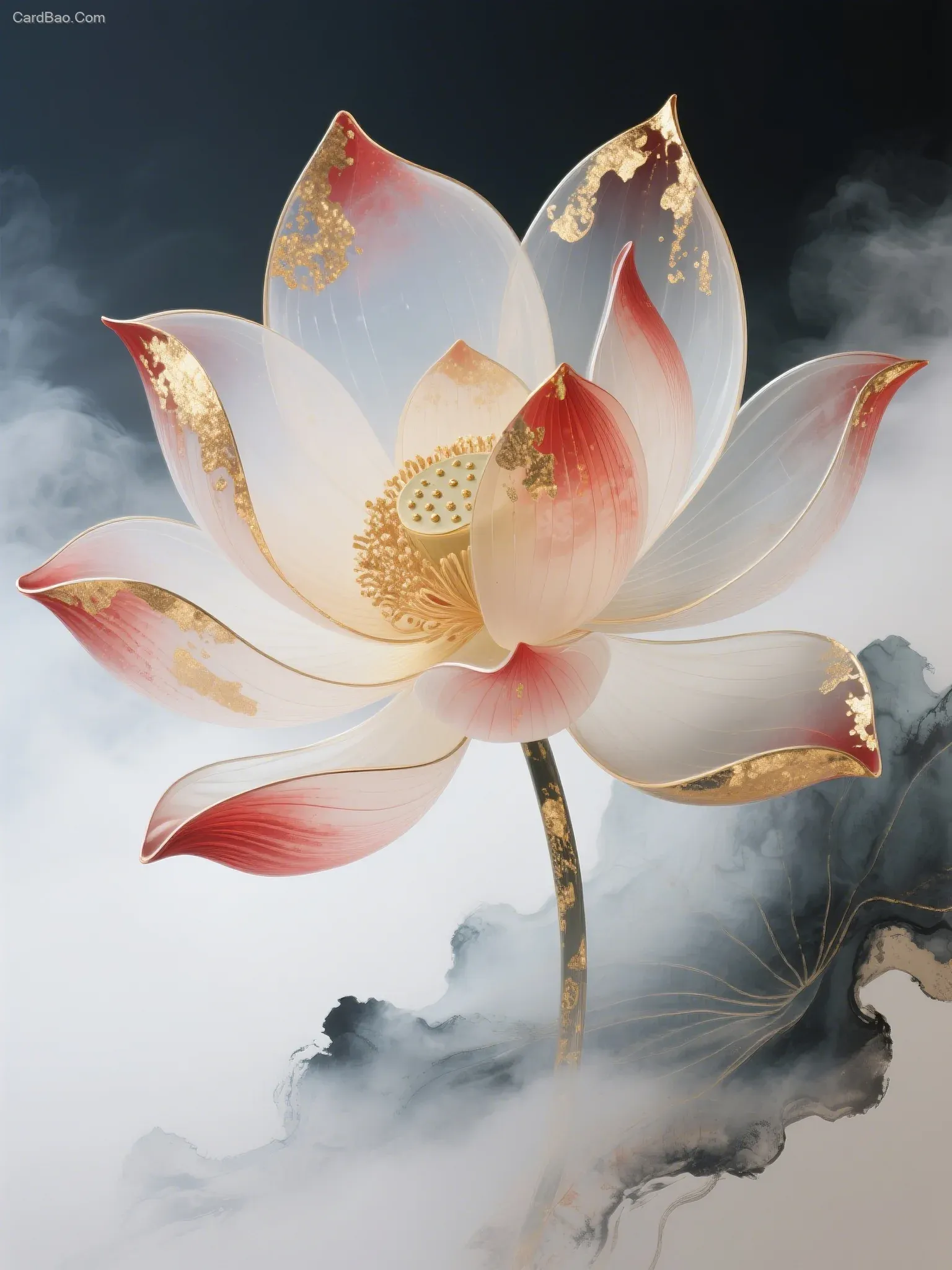 空灵的意境,超现实主义,巨大花瓣,复色的花瓣在水墨的晕染中轻轻舒展,仿佛在诉说着春天的故事。柔和的色彩与流动的线条,金箔岩彩点彩勾勒,神来之笔,让人感受到一种宁静与和谐。这幅画将传统水墨与现代艺术完美结合,展现出一种流动的美感。弥散渐变,透明如烟,朦胧质感,红笔细腻,肌理纹路,局部放大巨物主义,大面积留白,禅意,色彩极淡,云雾国风,3D渲染