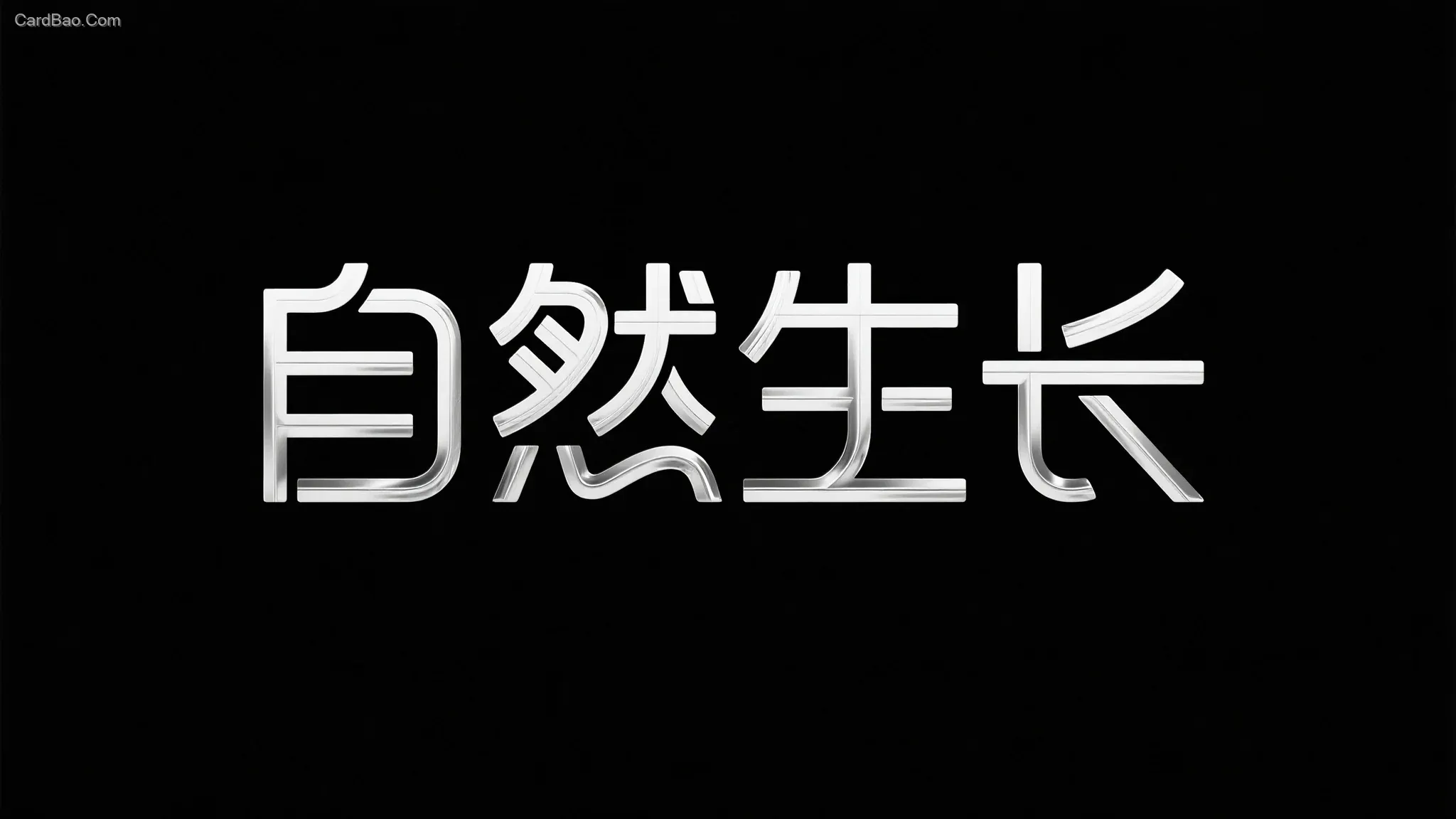 品牌标题字体设计,“自然生长”,严谨的无衬线体,现代极简风格,线条粗细统一,扁平化,大师作品,黑底白字