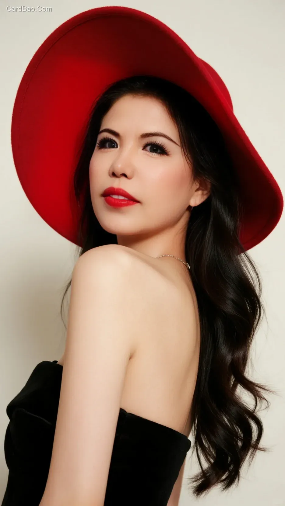 ##时尚美女,高档时尚女装,红色大沿时尚礼帽,长发飘逸微卷,电影大片,时尚杂志,超高清画质32K,
