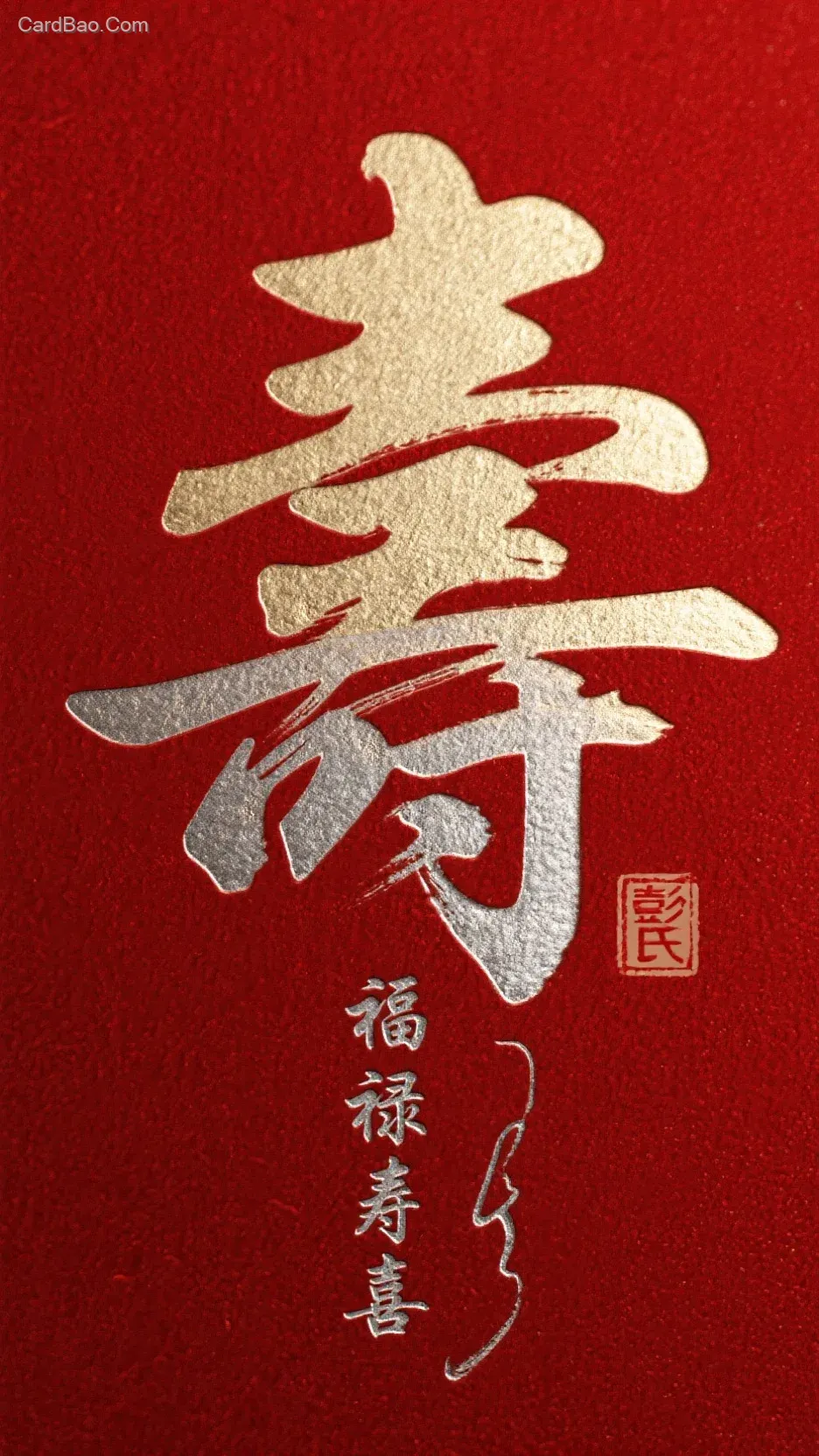 - Main feature: Large gold foil embossed characters "寿" (Longevity), occupying 1/4 of the canvas
