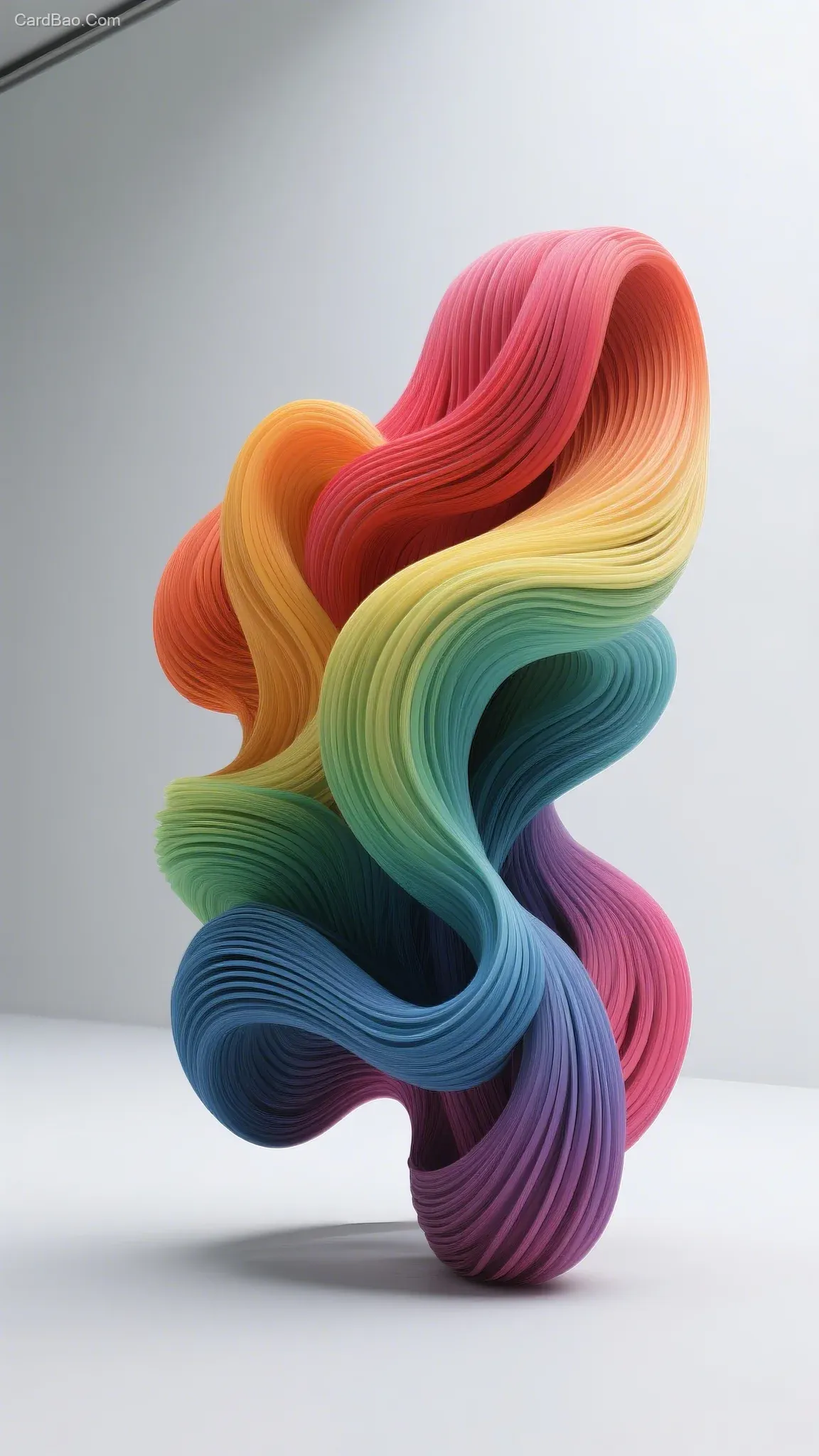 柔性材料测试,传统彩色纤维艺术的3D设计,前卫艺术,先锋艺术,时尚摄影,概念设计,材质实验,极简主义,干净背景,装置艺术,blender渲染,Damien Hirst风格、Anselm Reyle风格,Hajime Sorayama风格,James Jean风格、Daniel Arsham风格,撞色背景