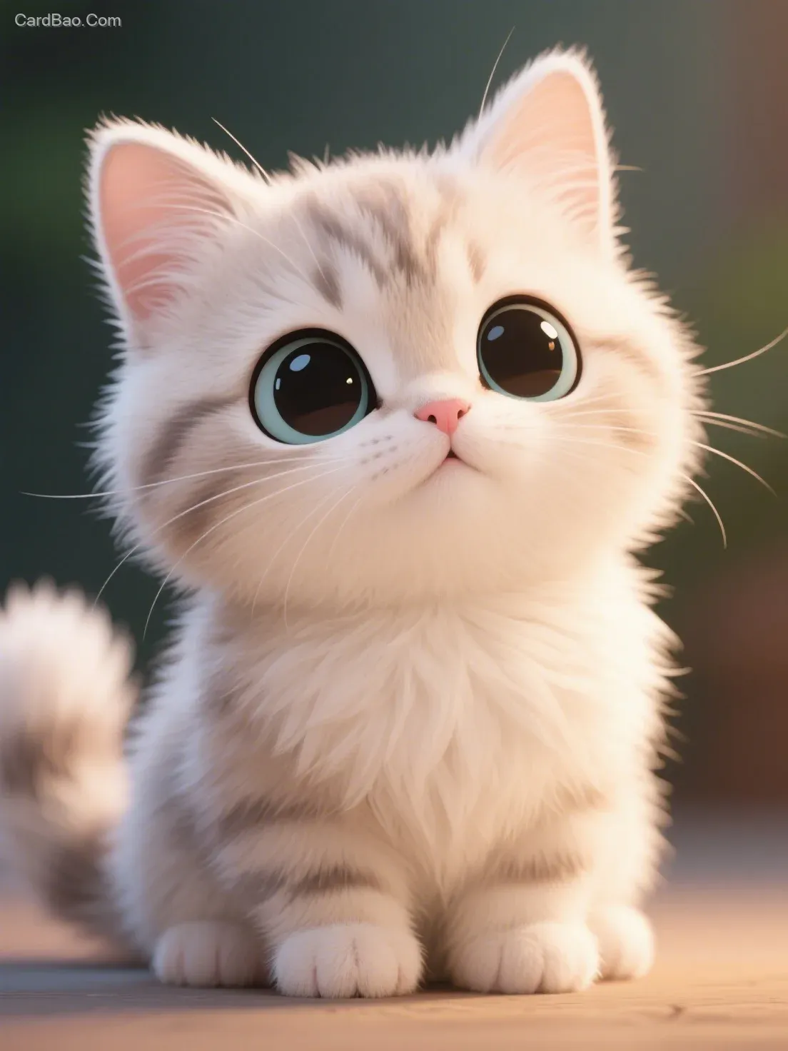 Cartoon wallpaper, a fluffy little kitten with an extremely cute expression, big eyes. Super adorable, high-definition.