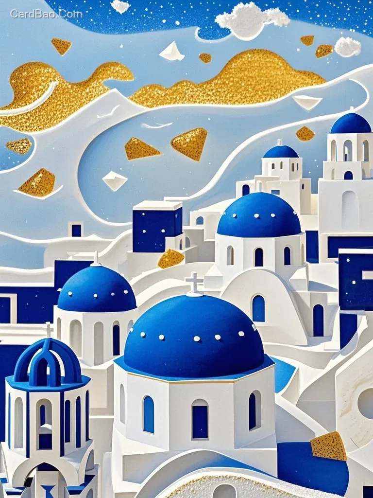 抽象风格的希腊圣托里尼沙画