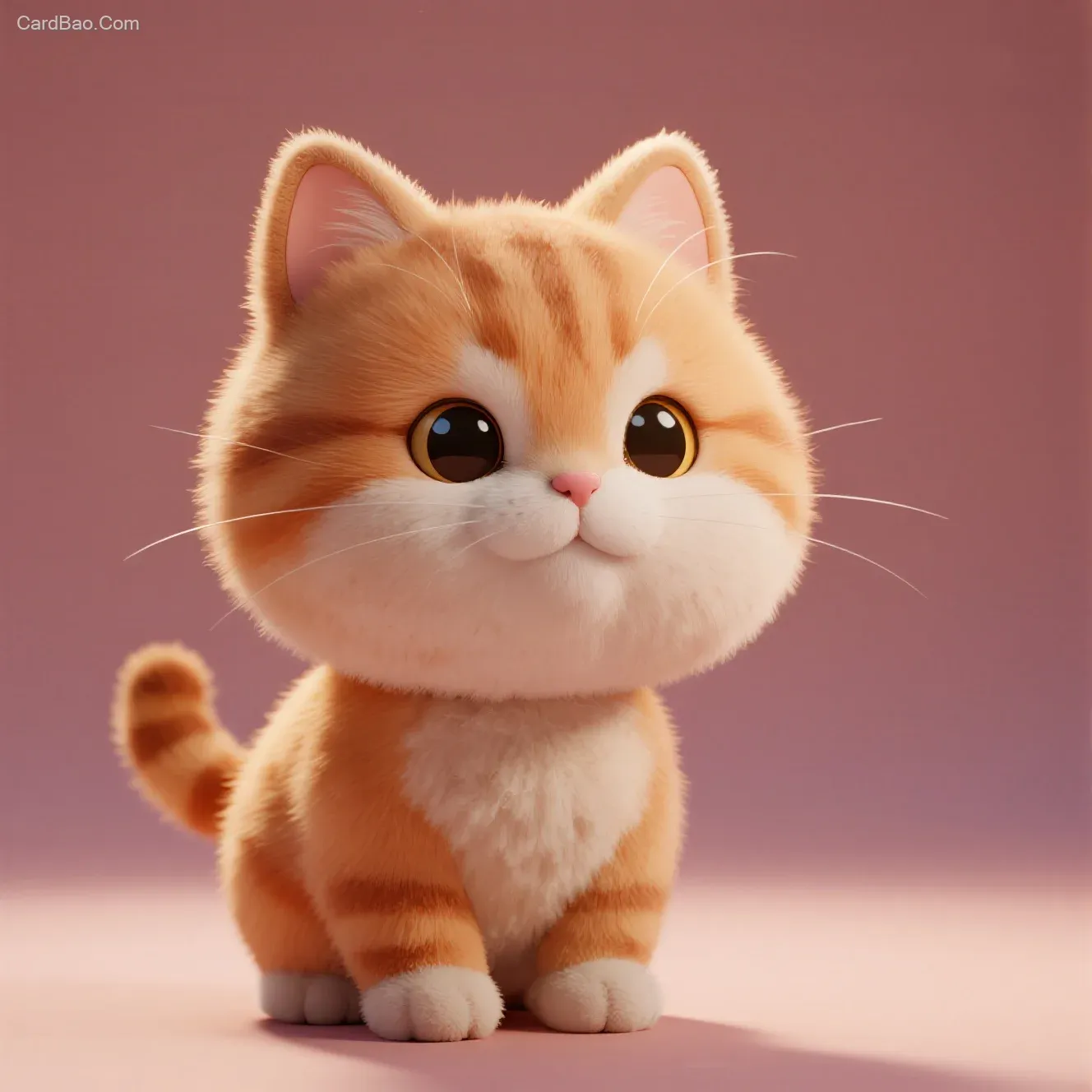 C4D modeling, generate an extremely cute, fluffy toy with a round face, a cartoon-style orange cat plushie, front view, facing the camera, eyes wide open, mouth pouty and round, 3D rendered, ultra HD 32K, blank background.