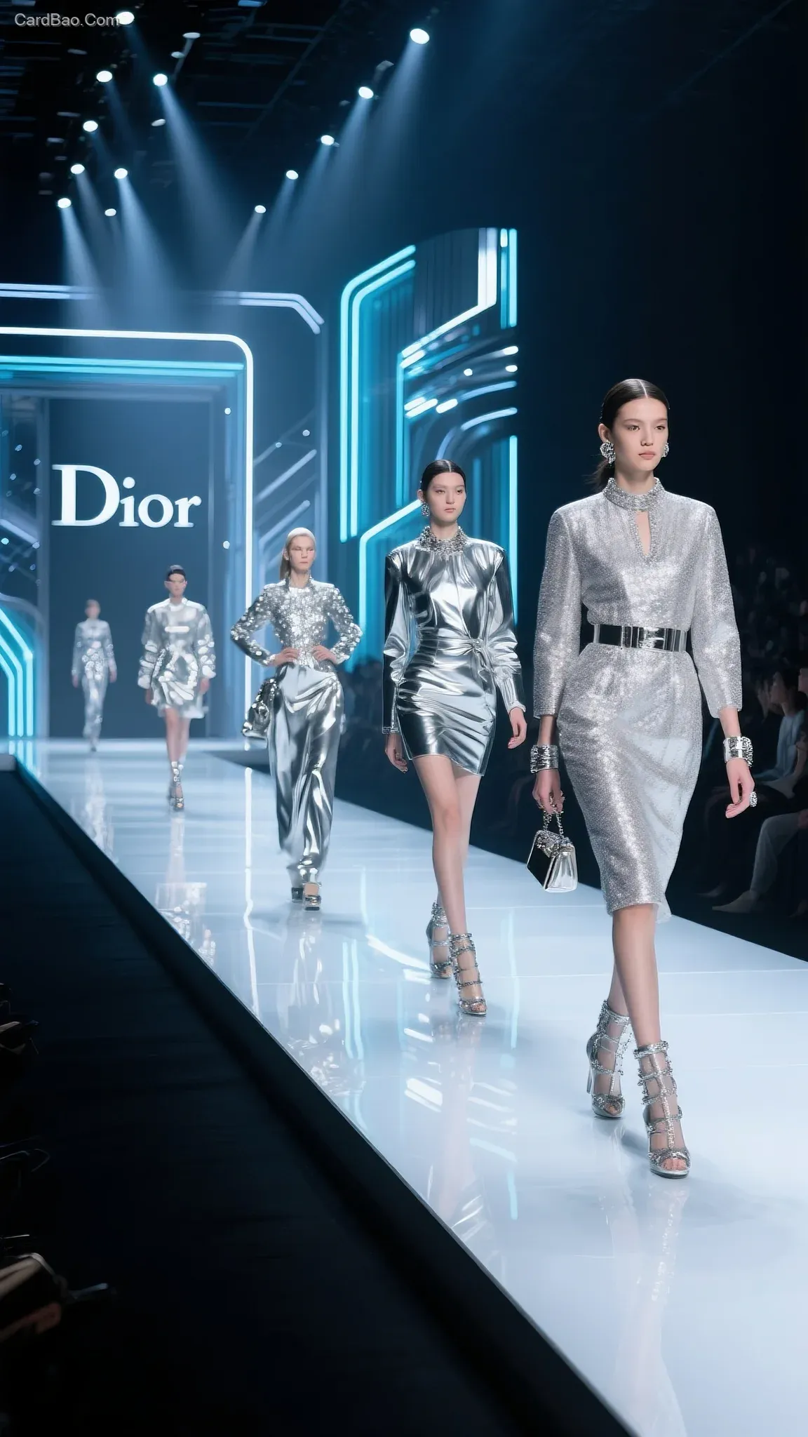 At the Dior fashion show held in Beijing in 2025, the models confidently showcased Dior's exquisite clothing and accessories. The T-shaped runway was brilliantly lit, creating a luxurious and fashionable atmosphere.