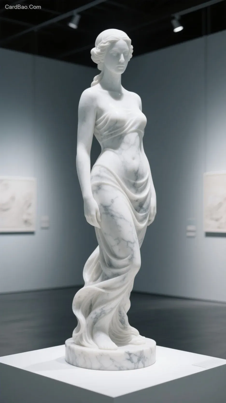 完美曲线,站姿美女艺术雕像,展示在美术馆里