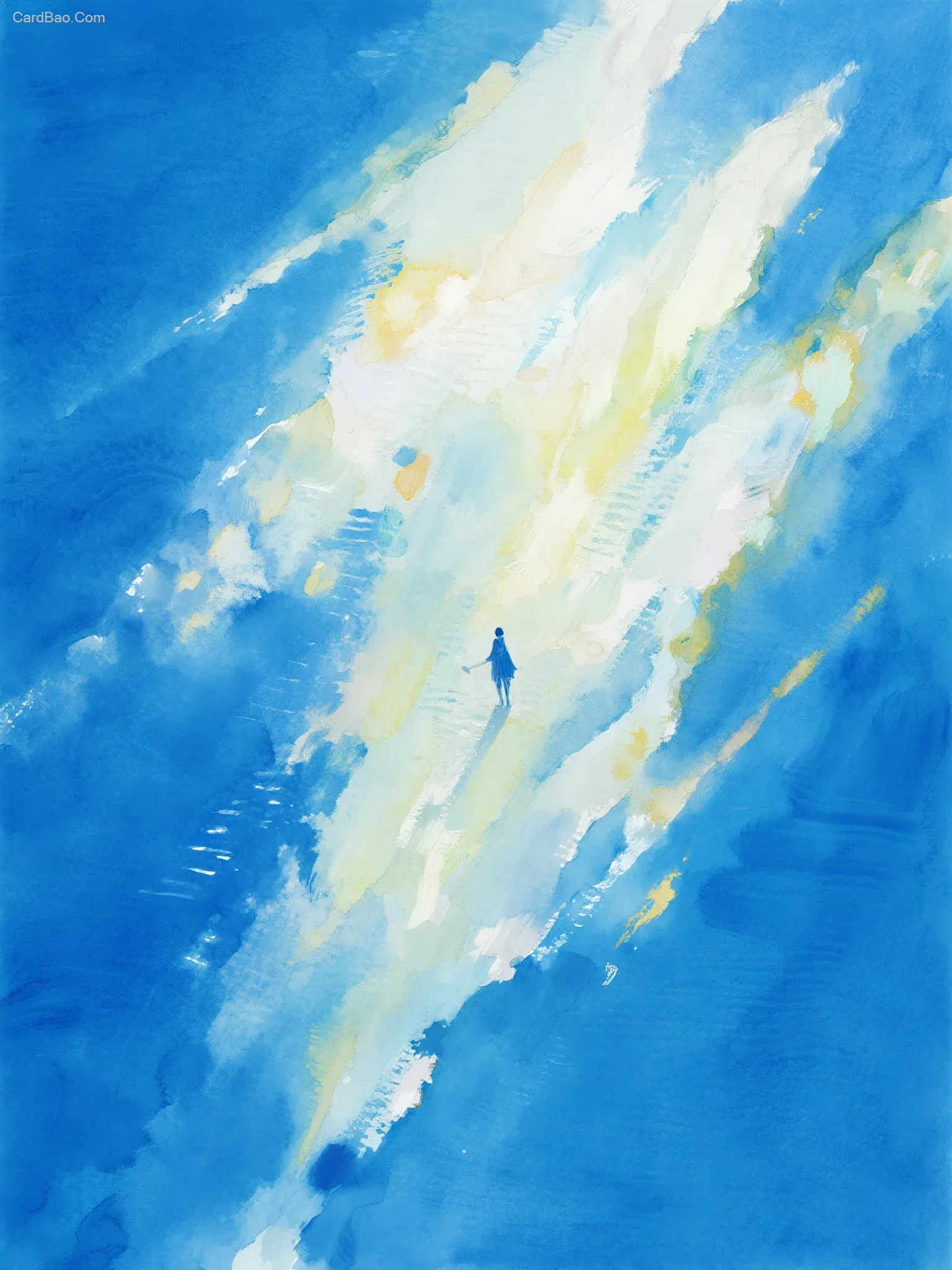 纯宝蓝色的背景,丙烯颜料+水彩,厚涂,颜料的涂抹感+肌理感,超现实主义美学,高级的氛围感,层次感,矛盾冲突的视觉冲击和有机融合,极简插画,虚实结合,模糊泛黄颗粒肌理,单一的纯色背景,模糊感+颗粒感+肌理感+朦胧感,清新淡雅,治愈配色,色彩冷暖对比强烈,强调梦幻温暖的氛围感,微光,非传统构图方式,动态模糊,自序,艺术,高级的氛围感