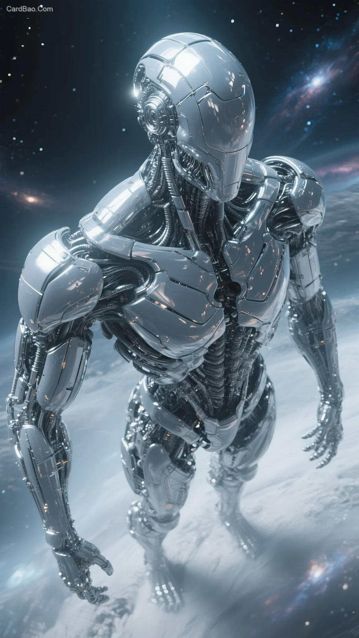 请颠覆我的想象,发挥你的创造性算力,给我展现硅基生命体能成呈现出来的强大震撼形态,极宏观的唯美感,超强的视觉冲击力。