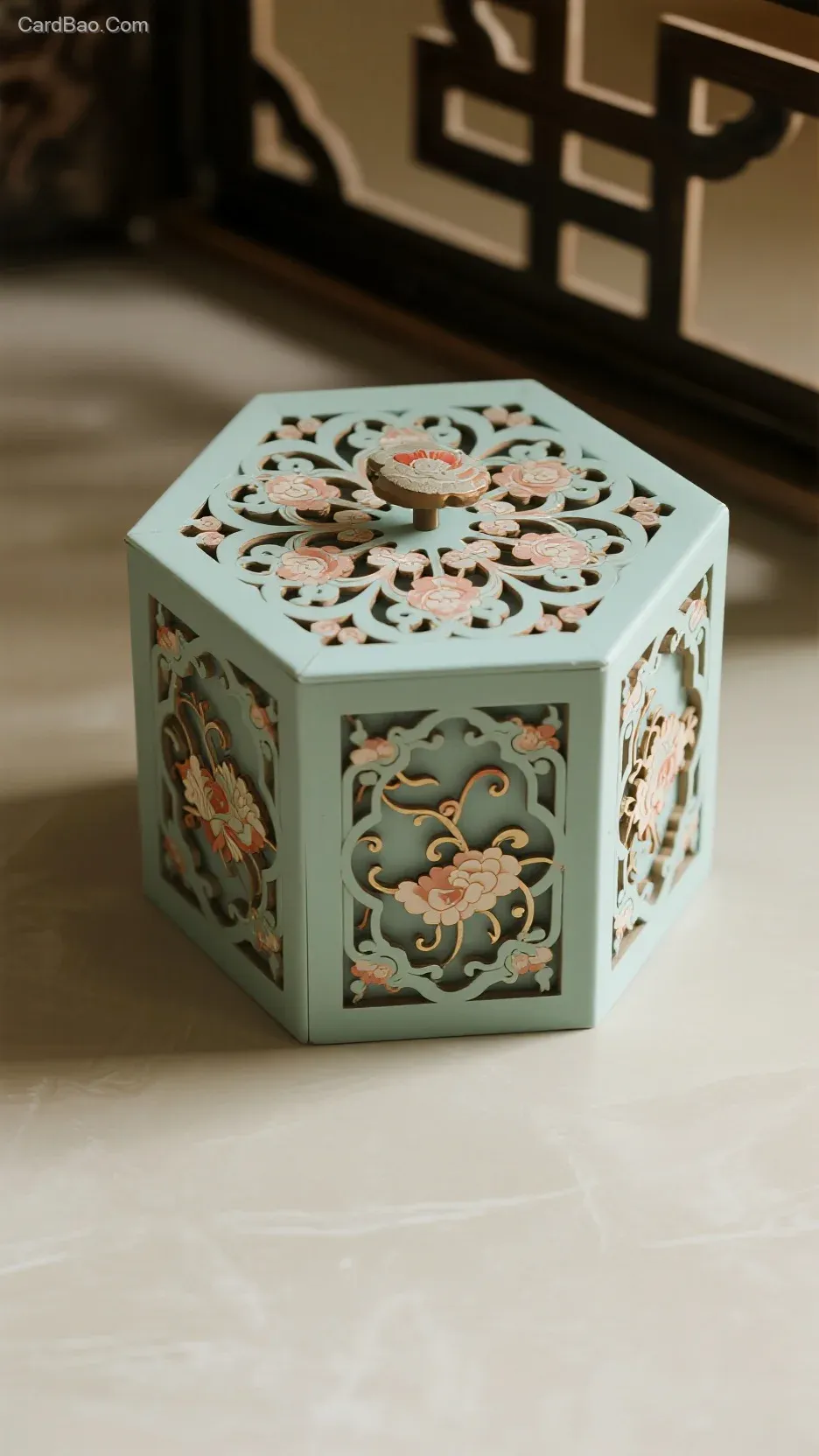 淡雅镂空雕花立体拼接华丽盒子,中式美学,简洁画面,