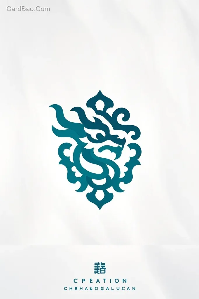 Creative LOGO design, totem design, line art, modern visual effects. A work that perfectly combines abstract traditional coiling dragons and scroll grass patterns. High-end aesthetic, international, minimalist flat design, pure white background, ultra-simplified.