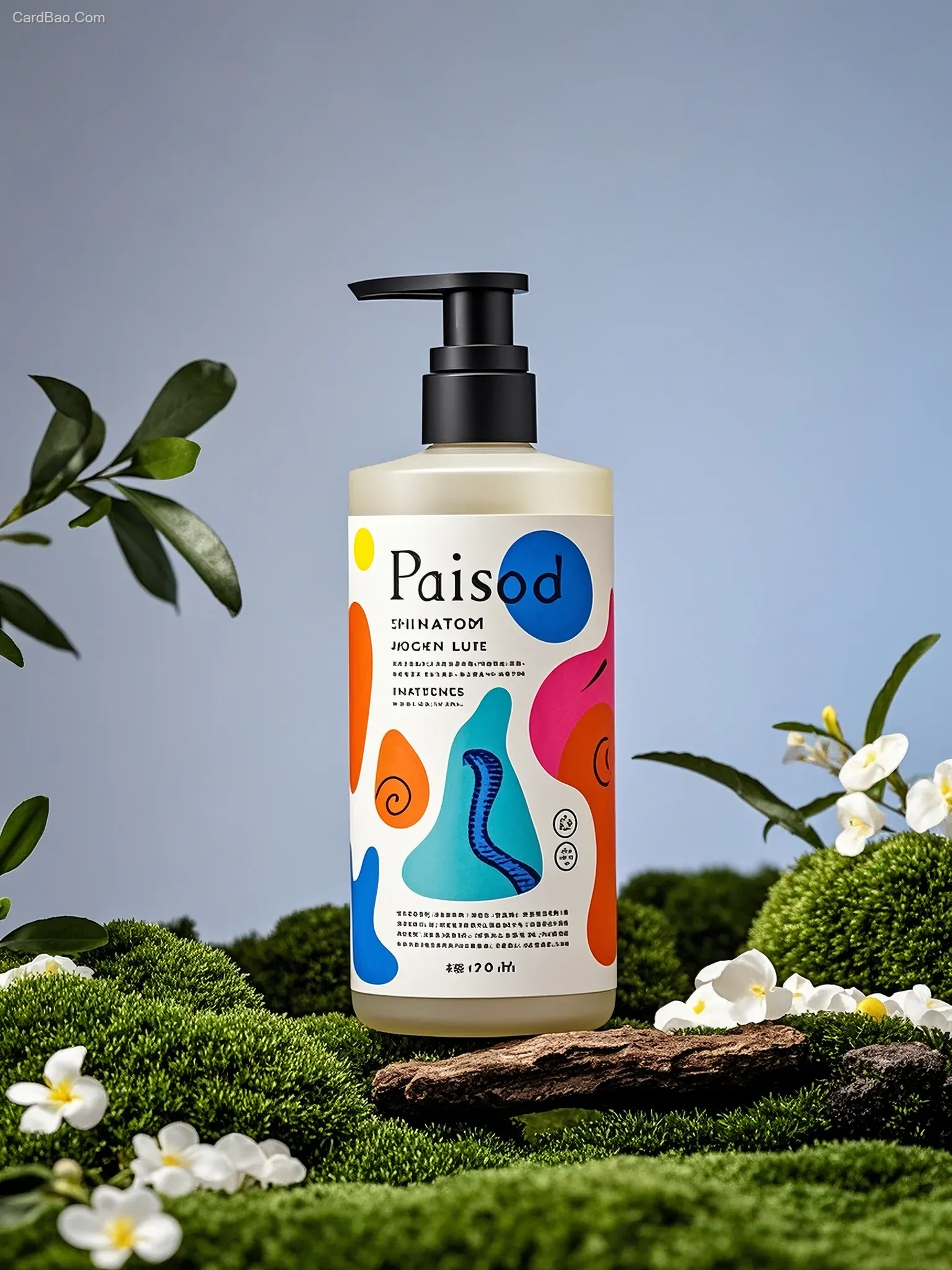 瓶贴设计主体描述词:抽象艺术主题,毕加索极简主义风格,桂林山水非对称图形和点线面随机组合,扭曲变形,与洗发水相关的文案,色彩夸张,艳丽对比强烈,高分辨率8K壁纸,最佳品质,细节精致,视觉冲击力强