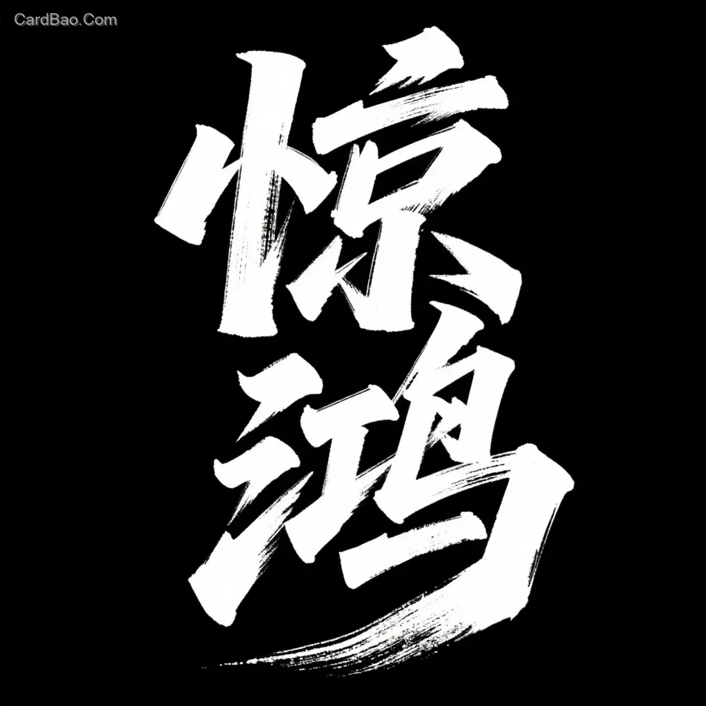 惊鸿,字体设计,标题设计,大气磅礴,现代艺术字体,狂野粗狂,黑底白字。