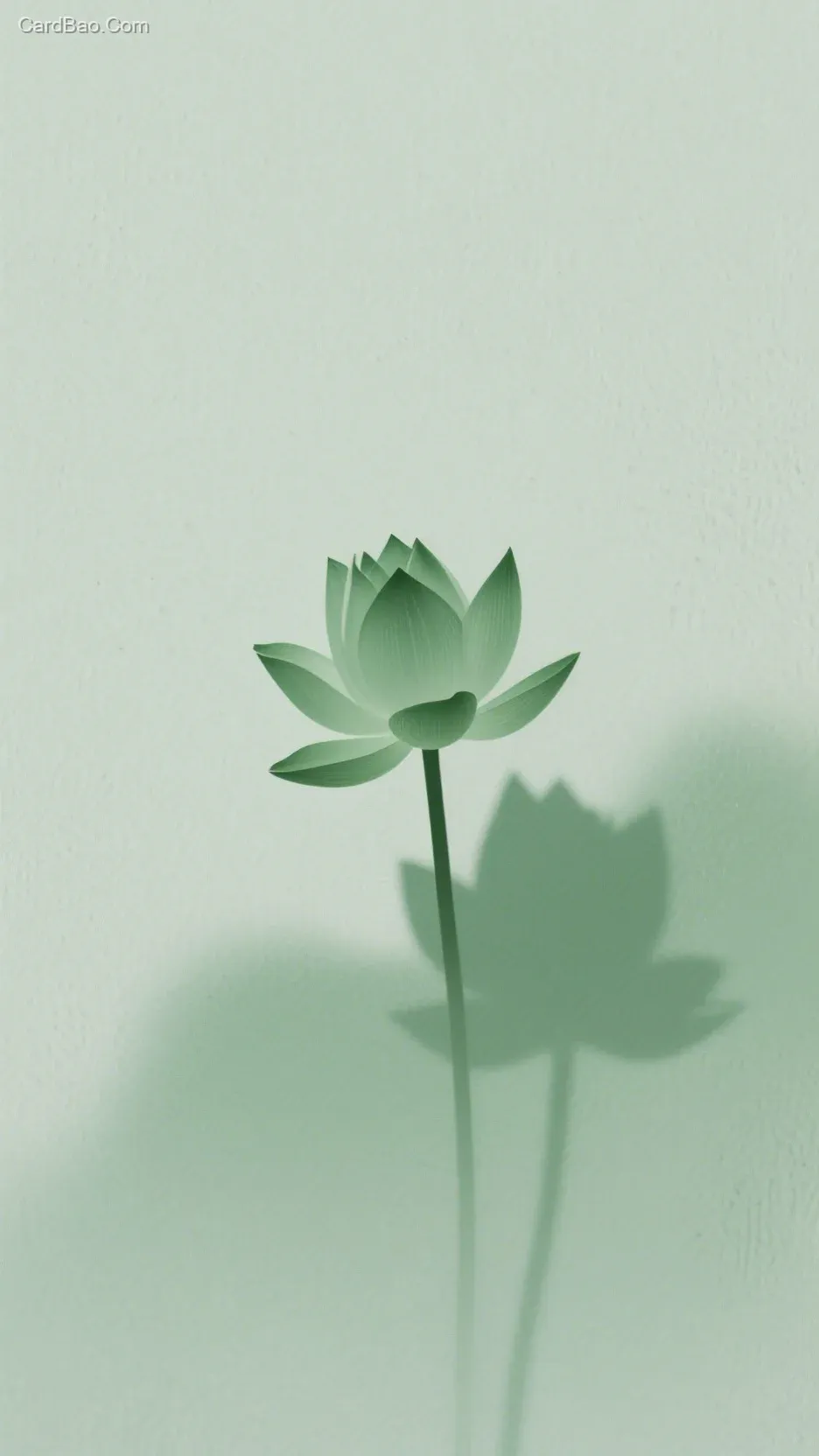 Large areas of negative space, artistic, high-end, minimalist style, Zen-inspired, lotus flower, shadow of lotus, low-saturation green, diffuse gradient, minimalism, textured feel. Golden ratio.