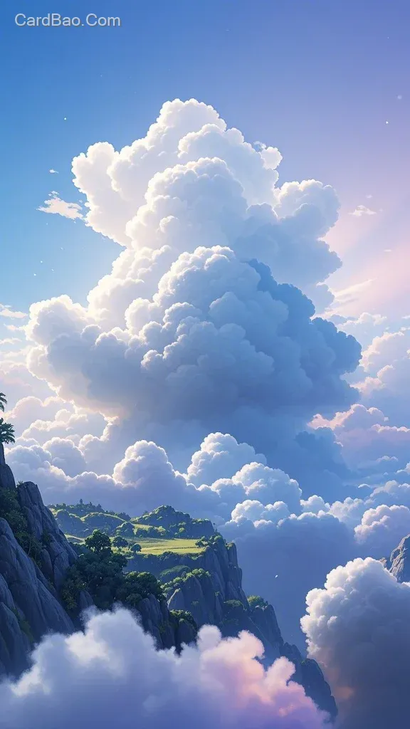 蓬松柔软的云朵堆叠成治愈形状,超广角镜头下的棉花质感云层,梦幻的渐变色蓝天背景,柔和的治愈系色调,体积光效强化云的立体感,8K分辨率展现细腻纹理,画面充满空气通透感