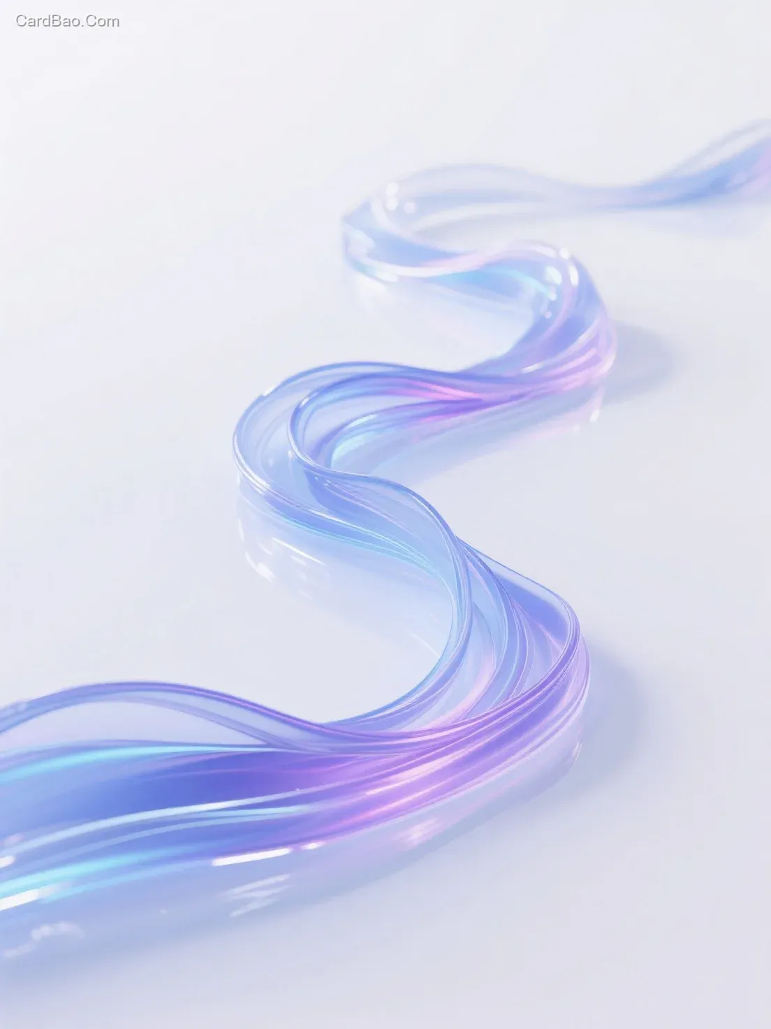 极简构图,意境,科技感,波浪形,科技感幻彩线条线,画面中有流动的线条似流水,蓝色紫色渐变色调。透光,反射光,高级感。背景为白色,整体营造出一种空灵、梦幻的意境,现代美学科技韵味。