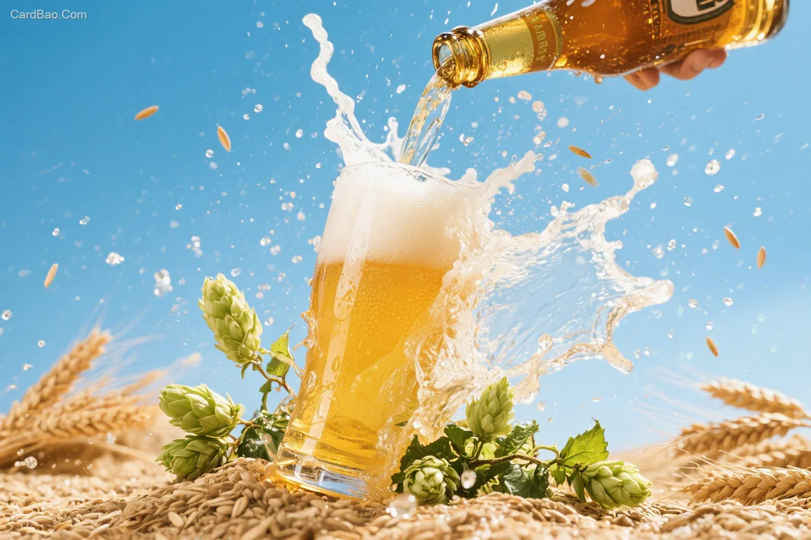 (Note: This translation maintains the vivid imagery of the original Chinese phrase while adapting it naturally into English. The use of "collide" conveys the dynamic interaction between malt and hops, and "splashing water droplets everywhere" captures the energetic, effervescent quality of brewing. The phrasing is concise yet evocative, suitable for describing the brewing process or beer-related themes.)
