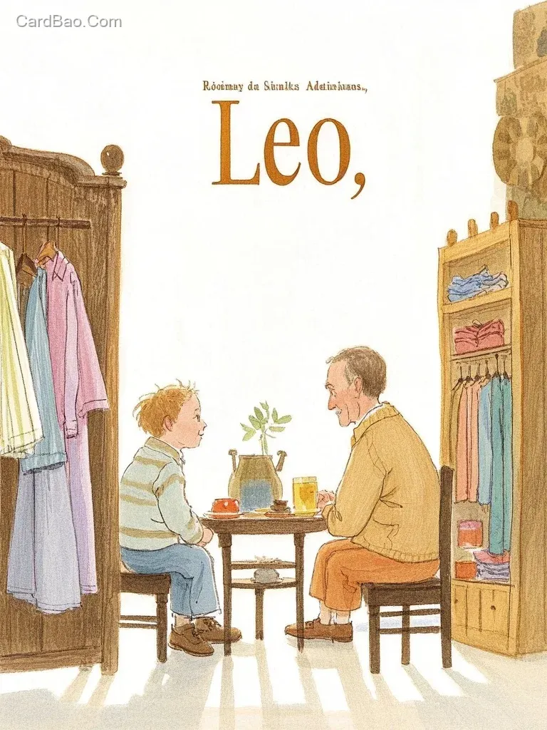 Illustration in the style of Raymond Briggs and Mattias Adolfsson, white clean background, using a mixed media of pen and watercolor. A cozy scene from Leo.