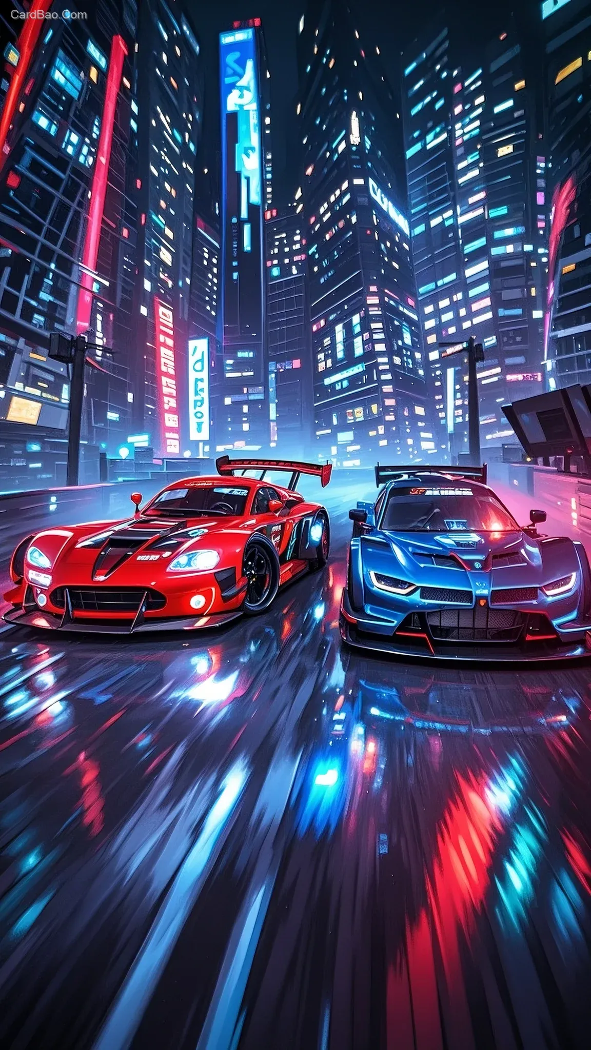 3D卡通风格 两辆赛车在城市的街道的比赛