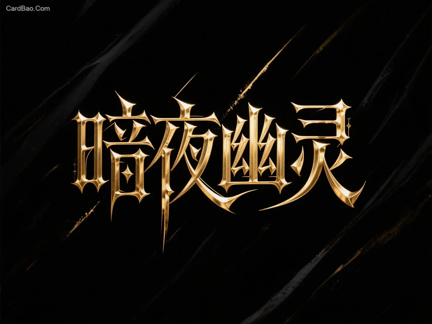 “暗夜幽灵”,哥特风格字体,字体线条尖锐细长,字母笔画粗细对比鲜明。采用金属字效,具有强烈的金属质感,通常伴随着高光和阴影的对比,展现出硬朗、冷峻的视觉效果。