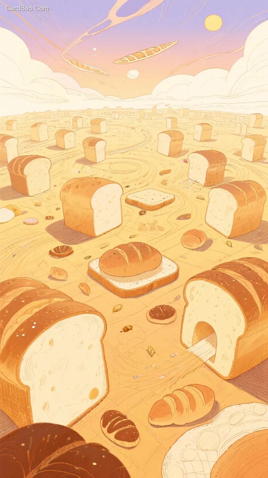 Warm tones, line illustration, dream series, stream of consciousness, clear imagery, world of bread, high-end feel, attention to detail, bird's-eye view, bold brushstrokes, depth of field, HD wallpaper, delicate brushwork, intricate, grand composition.
