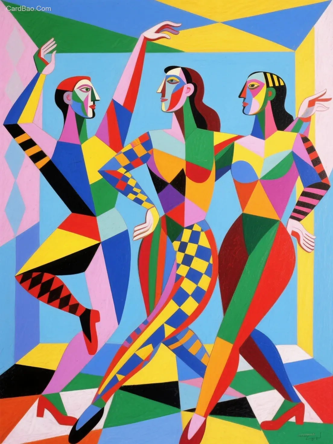 毕加索立体主义风格作品《三个舞蹈家》:1921 年创作,将人物、服饰等以几何形态重组,色彩明快,展现立体主义在人物场景创作中独特的空间与形式构建