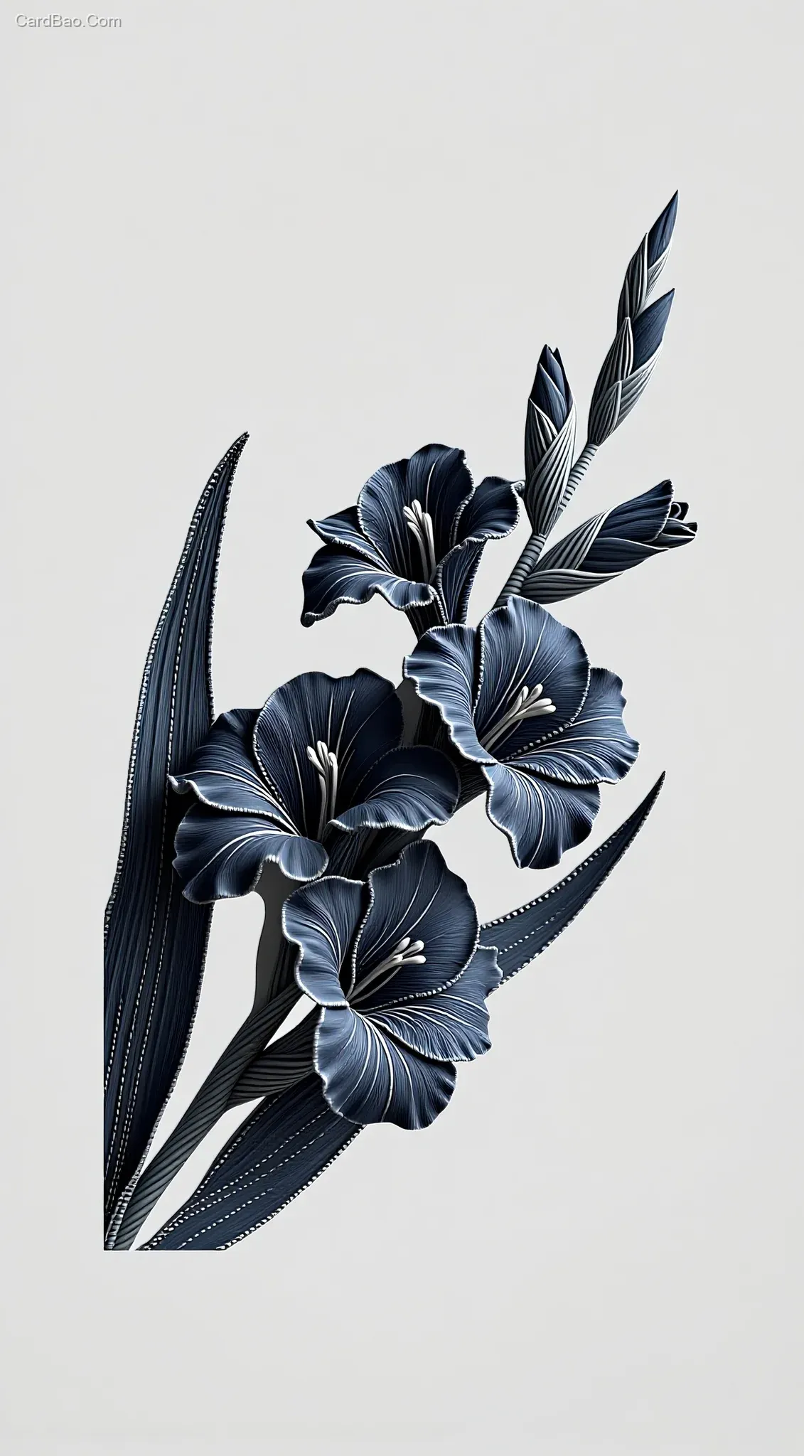 ##摄影风格,超写实渲染。画面主体是一束用牛仔布手工制作的花朵,花瓣呈现出深蓝色牛仔布的纹理与质感,白色缝线勾勒出花瓣脉络,花蕊部分细节精致。叶片同样由牛仔布制成,带有自然的褶皱与缝线装饰。背景为纯白色,突出牛仔布花朵的手工质感与简约、文艺的风格,营造出宁静、雅致的氛围。