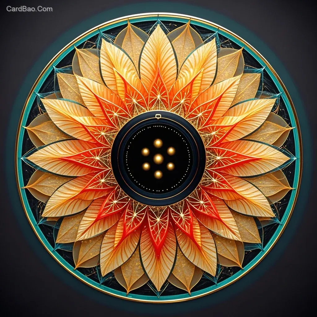 Overall Structure: Strictly symmetrical like a mandala, with smooth and orderly lines. The pure black background intensifies the richness of the colors and the complexity of the layers. The design blends the precision of sci-fi machinery with the organic beauty of natural florals, featuring meticulous detailing (such as grid density and color gradients) for a striking visual impact.