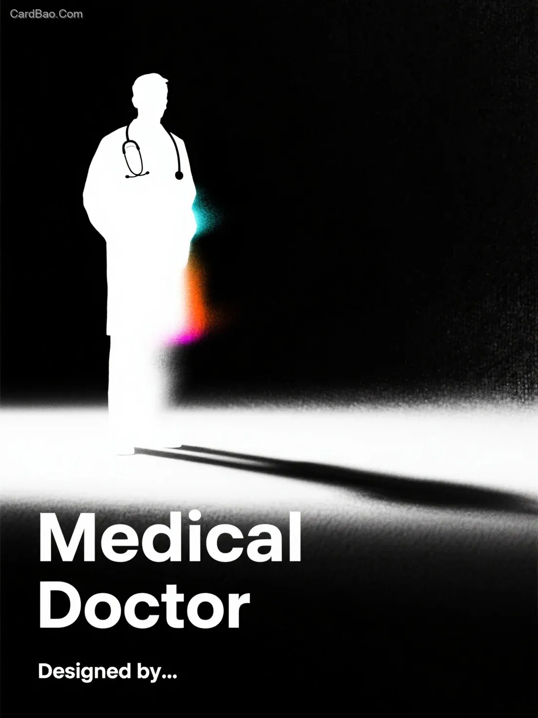 艺术人物摄影,极具艺术的现代海报设计风格。医生剪影,极简,黑白,鲜亮的一小撮颜色作为点缀,丰富的视觉对比色,弥散风,颗粒感,朦胧感,笔触感,肌理感,大师级排版