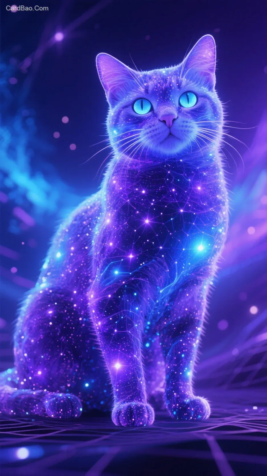 四维通体由星空般梦幻的紫蓝色构成的一只猫