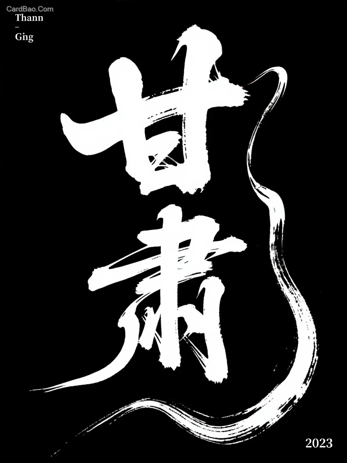 Calligraphy Poster "Gansu" – Wild and Unrestrained Cursive Script with Dynamic Visual Tension. Ultra-bold strokes flow smoothly and elegantly, featuring cleverly extended and transformed brushwork with flying white effects. The strokes are fluid and free-spirited, set against a clean black background with the main characters in white. A masterful poster artwork, evoking the style of a cinematic poster.