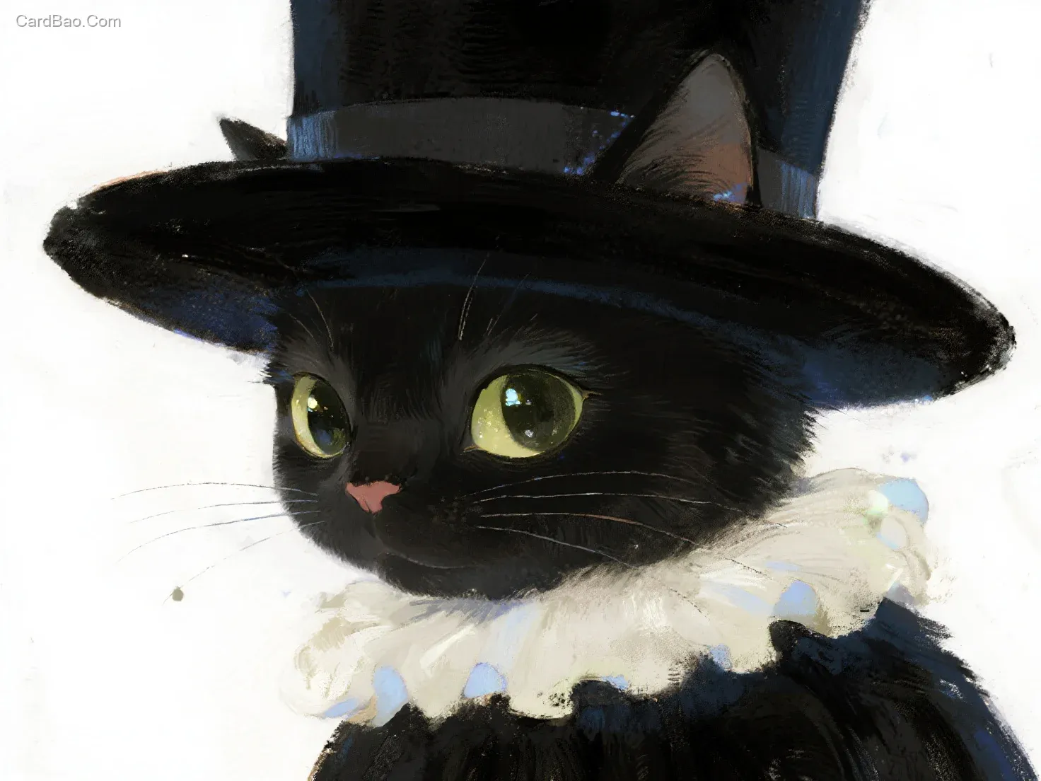 Art Illustration Pure White Background Black Top Hat Cat Edge Glow Whimsical Fairy Tale Dark Atmosphere Dreamcore Hazy Film Soft Light Retro Grain Brush Texture Soft Glow Dreamy Dreamcore Aesthetic Distinct Matte Grain Texture Picture Book Illustration Low Saturation Fairy Tale Picture Book Artwork Hazy Ambience Light and Shadow Contrast Painting Work Minimalist Style Surrealism