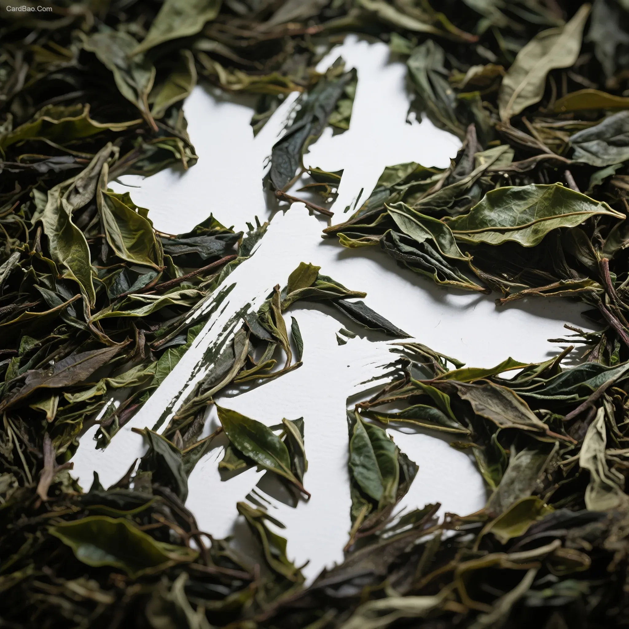 The phrase "荼香" is written in a flying white cursive script, but the characters are composed of tea leaves.