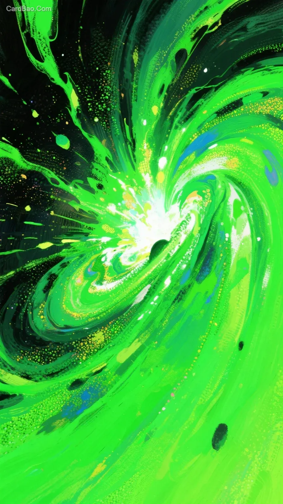 宇宙大爆炸,超现实,完美的作品,颗粒感,肌理感,水粉,颜料涂抹,纯荧光绿背景,魔幻,神秘光影扭曲,现代新漫画,高饱和色彩,磨砂颗粒质感,弥散渐变,怪诞美学,笔触,抽象,视觉冲击